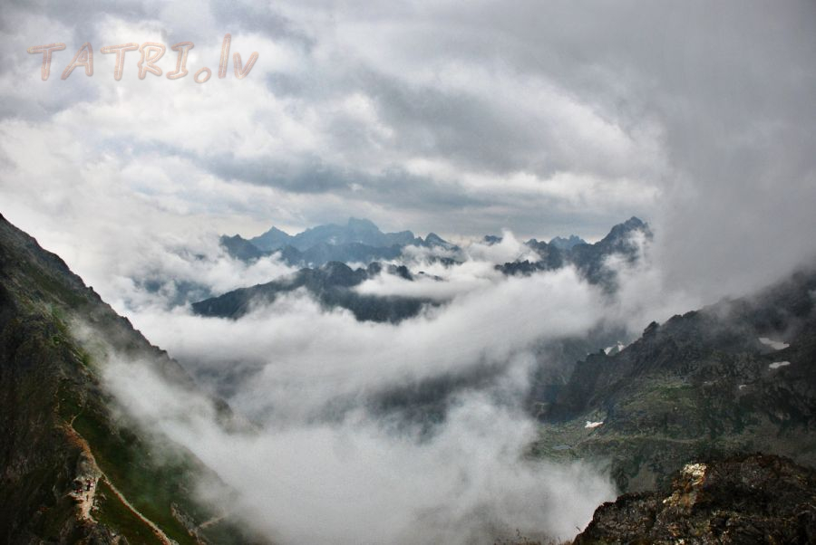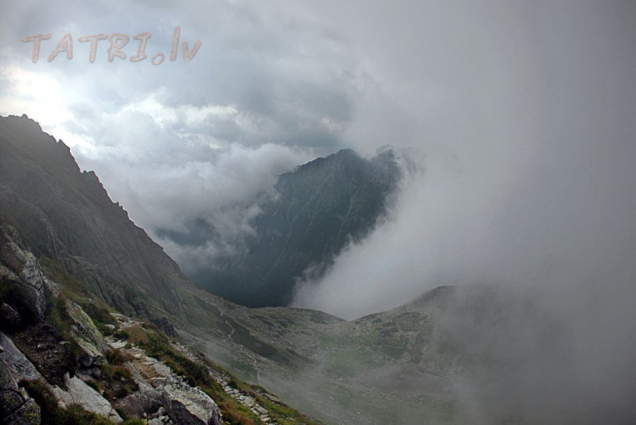 Горный перевал Шпигласовы в облаках с вершины Шпигласова